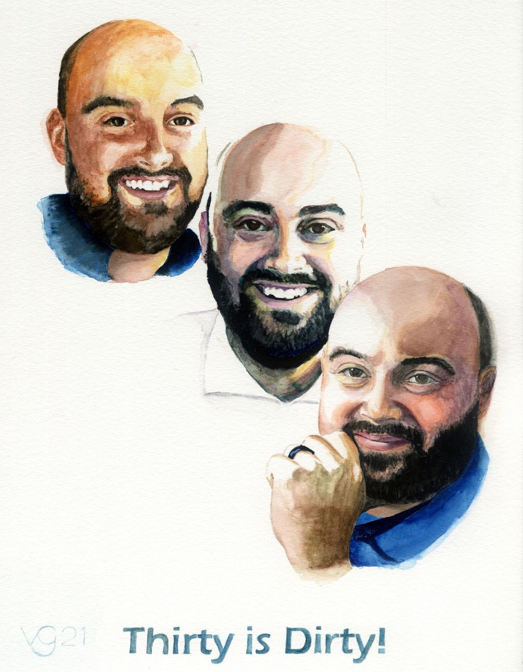 A watercolor series of favorite images of my stepson, painted for his thirtieth birthday.